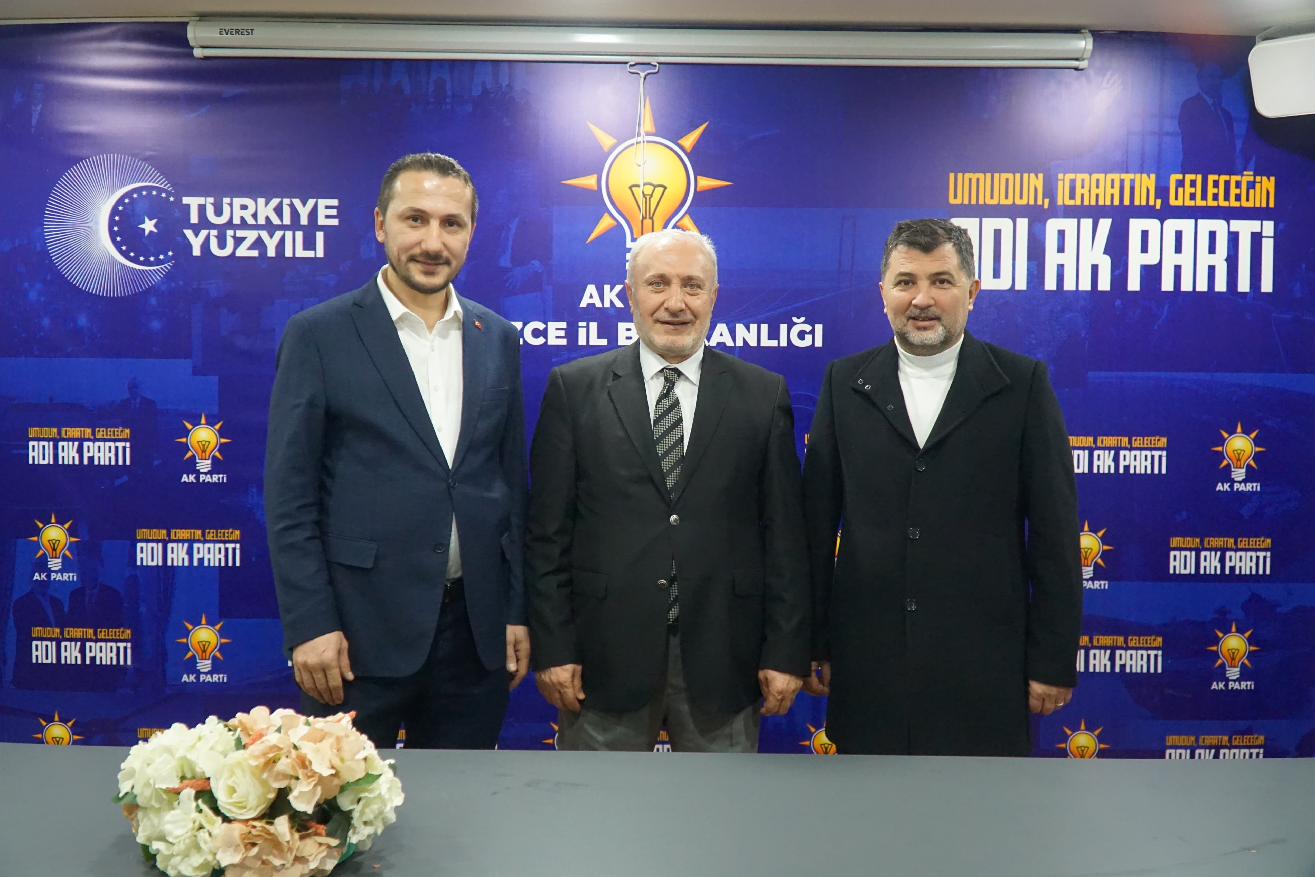 “Aramızda Düzce’mizin Milli Eğitim camiasından çok kıymetli hocalarımız var. Özellikle ortaokul ve lise çağlarında üzerimizde birçok emekleri olan, İsmail Akbaş, Zekeriya Güzeldal ve Bayram Ali Yılmaz hocalarımız bugün AK Parti ailemize katılmış bulunmaktalar. Milletvekilimiz Ercan Öztürk ile beraber rozetlerini taktık, üyeliklerini yaptık. İnşallah bundan sonra AK Parti ailemiz ile birlikte hizmet edeceğiz. Allah kendilerinden razı olsun, hayırlı uğurlu olsun diyorum.”