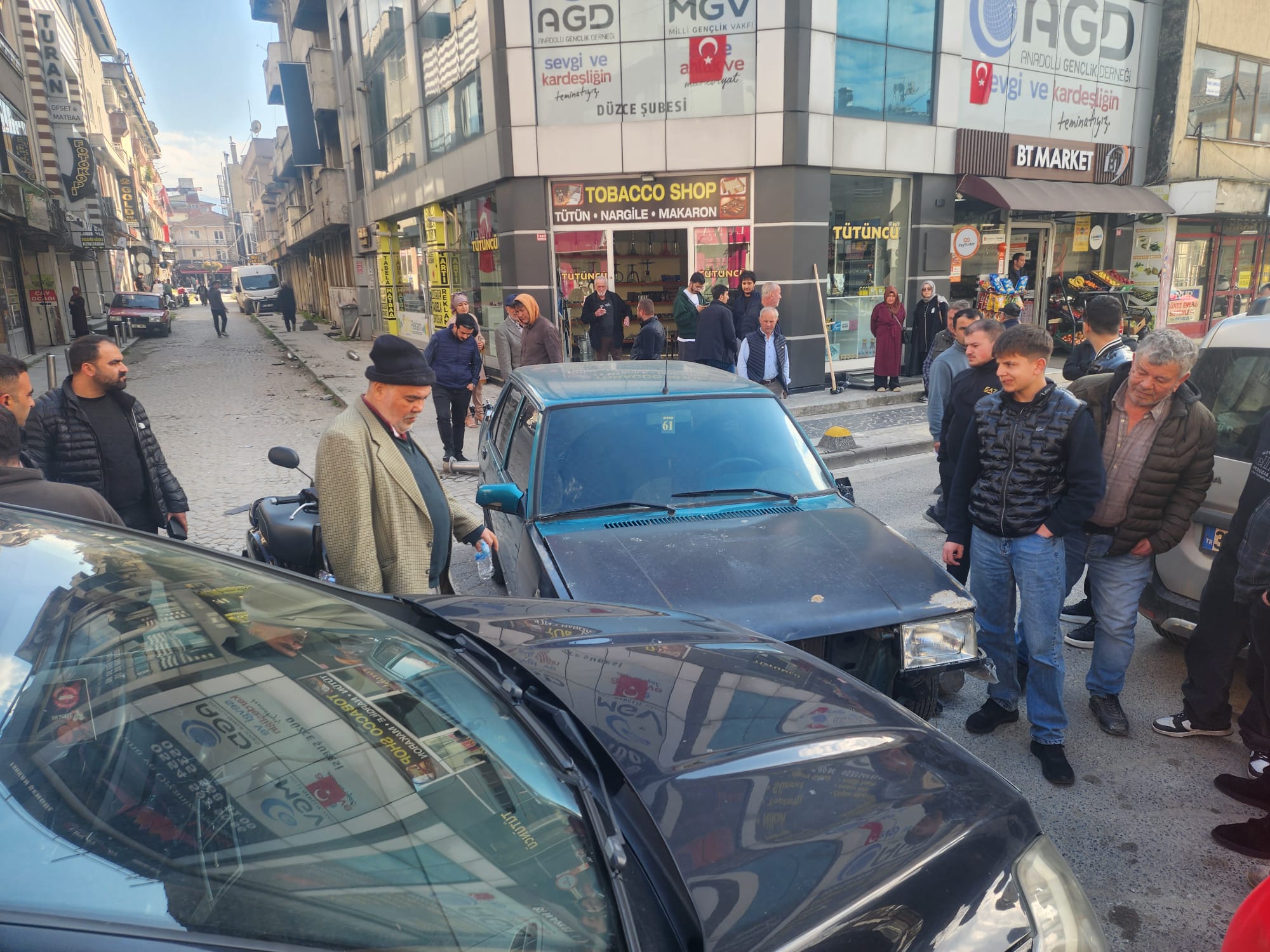 Düzce merkez Şerefiye Mahallesi’nde meydana gelen trafik kazasında, kontrolden çıkan bir otomobil park halindeki araçlara çarparak durabildi. Sürücünün şeker hastası olduğu ve kaza anında rahatsızlandığı iddia edildi.