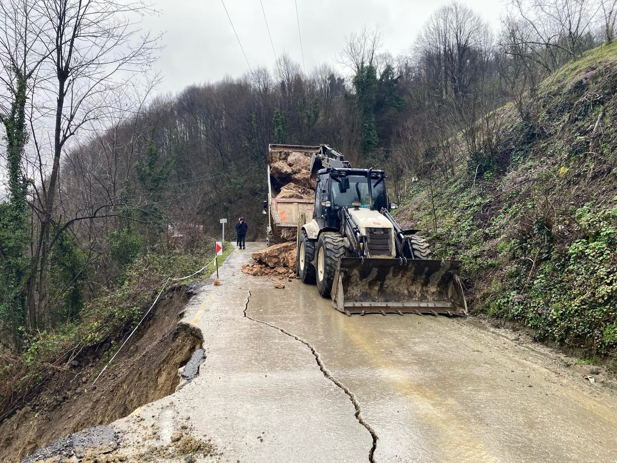 Cumayeri’nde 3 köyü (Dokuzdeğirmen – Çelikdere – Harmankaya) birbirine bağlayan grup yolunda heyelan meydana geldi. Olayda herhangi bir can kaybı ya da yaralanma yaşanmazken, Düzce İl Özel İdaresi ekipleri, yoldaki toprak-taş yığınlarını temizlemek ve dolgu çalışması yapmak için iş makineleri ile bölgeye intikal etti.